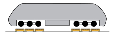 A (eine Spurbreite) oder B (zwei Spurbreiten)